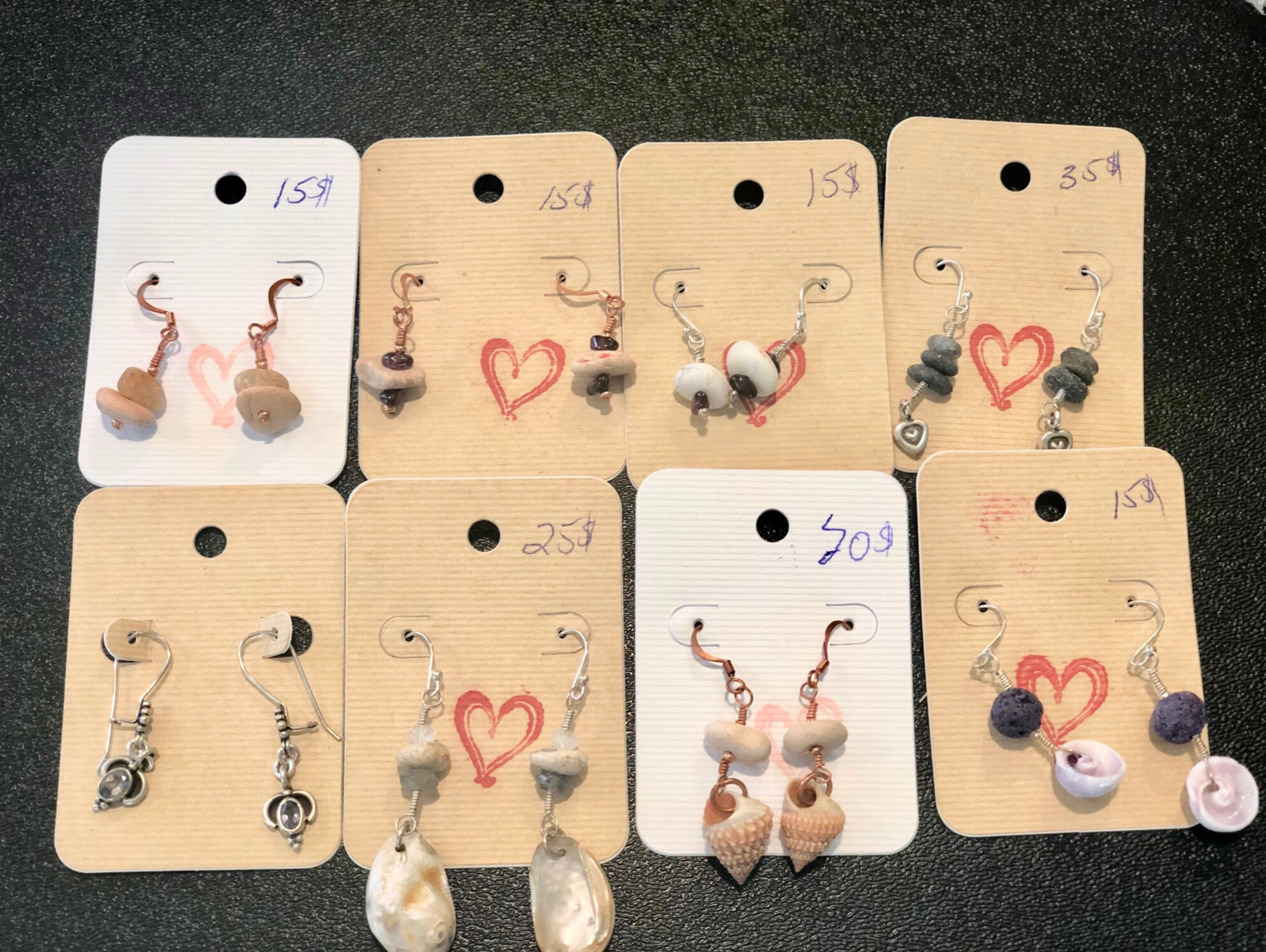 Earthing Tools line: Earings made with river rocks from USA and polynesia and gems on Sterling or Copper.